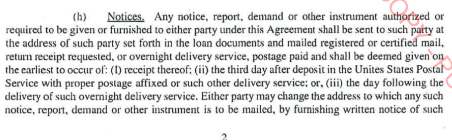 I reviewed the loan documents. Typically, the loan agreement has detailed language regarding events of default and the corresponding notice provisions. These loan agreements do not have events of default, and the notice section does not discuss a timeline to cure defaults. It only addresses where notices should be sent: